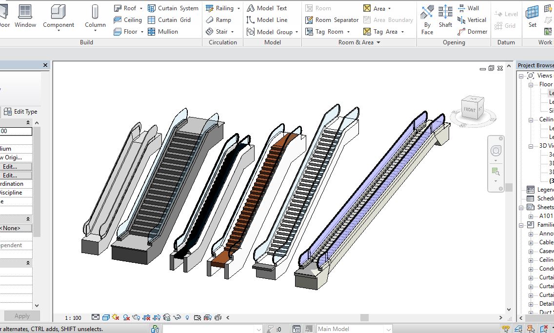 6 Escalator models Revit 2019