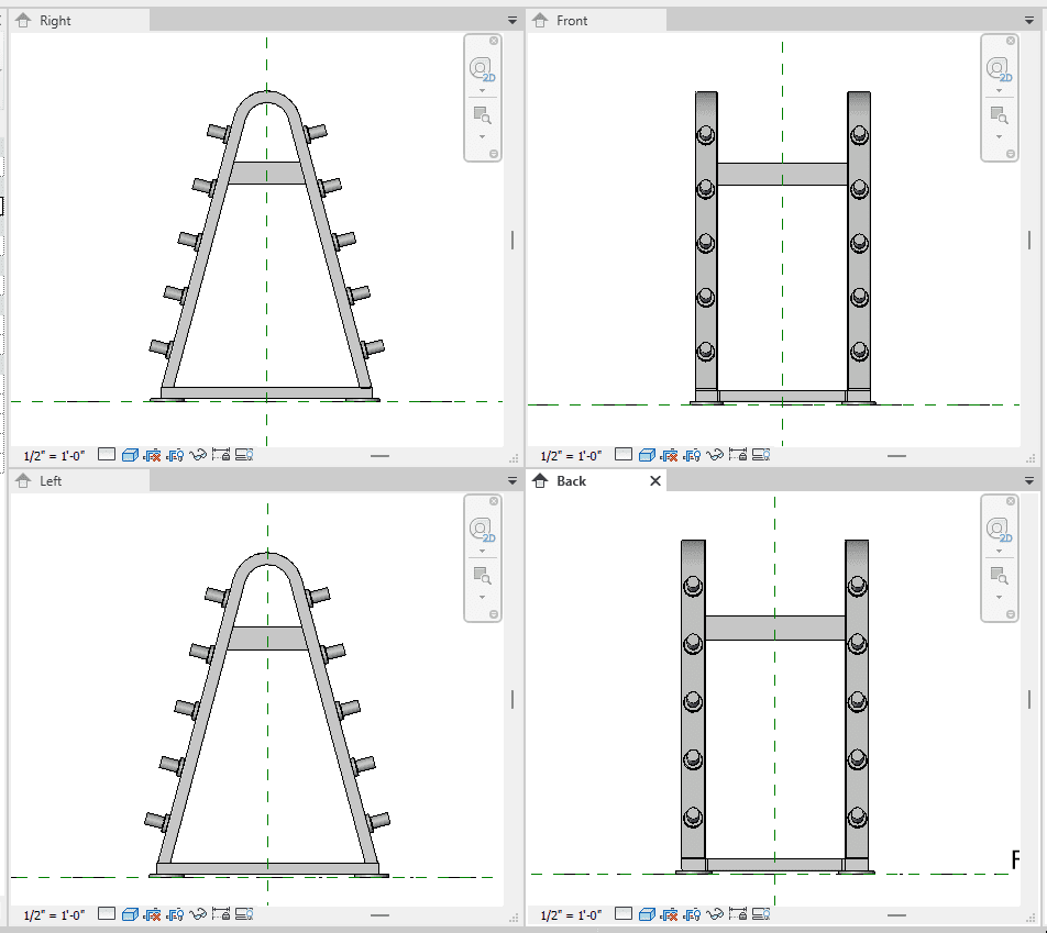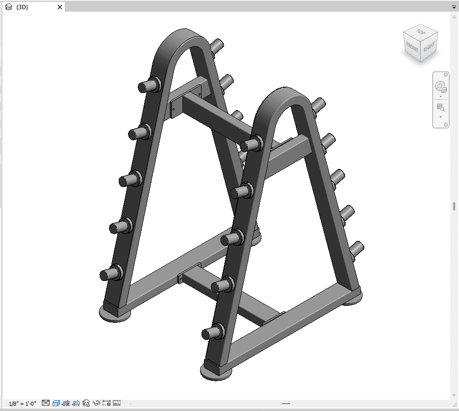 Built with lightweight geometry and clean, optimized modeling, the rack ensures excellent performance in large Revit projects while maintaining visual clarity. Its angled A-frame structure and evenly distributed support pegs offer a realistic representation aligned with modern gym equipment designs. The family includes precise proportions, stable base geometry, and consistent detailing, making it ideal for accurate space planning and interior coordination.