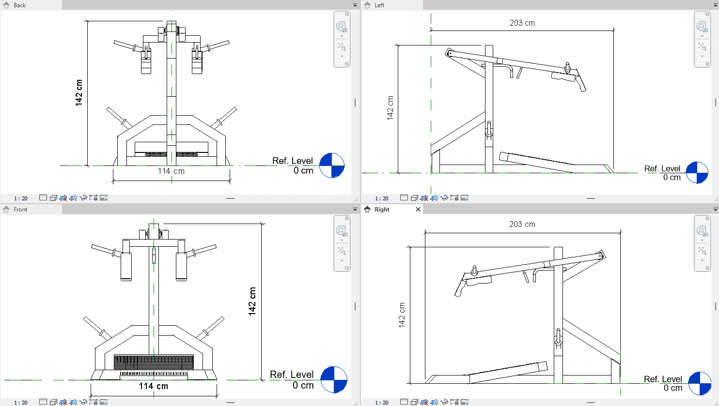 The Gym Machine Calve Extension and Squat 3D Revit model (.rfa), created in Revit 2019, is a versatile piece of fitness equipment perfect for commercial gym and fitness center designs. This model replicates a dual-purpose machine, designed to support calve extension and squat exercises. Ideal for architects, gym planners, and interior designers, this Revit model allows you to add realistic and multifunctional gym equipment to your layouts, enhancing both the visual appeal and functionality of your designs.