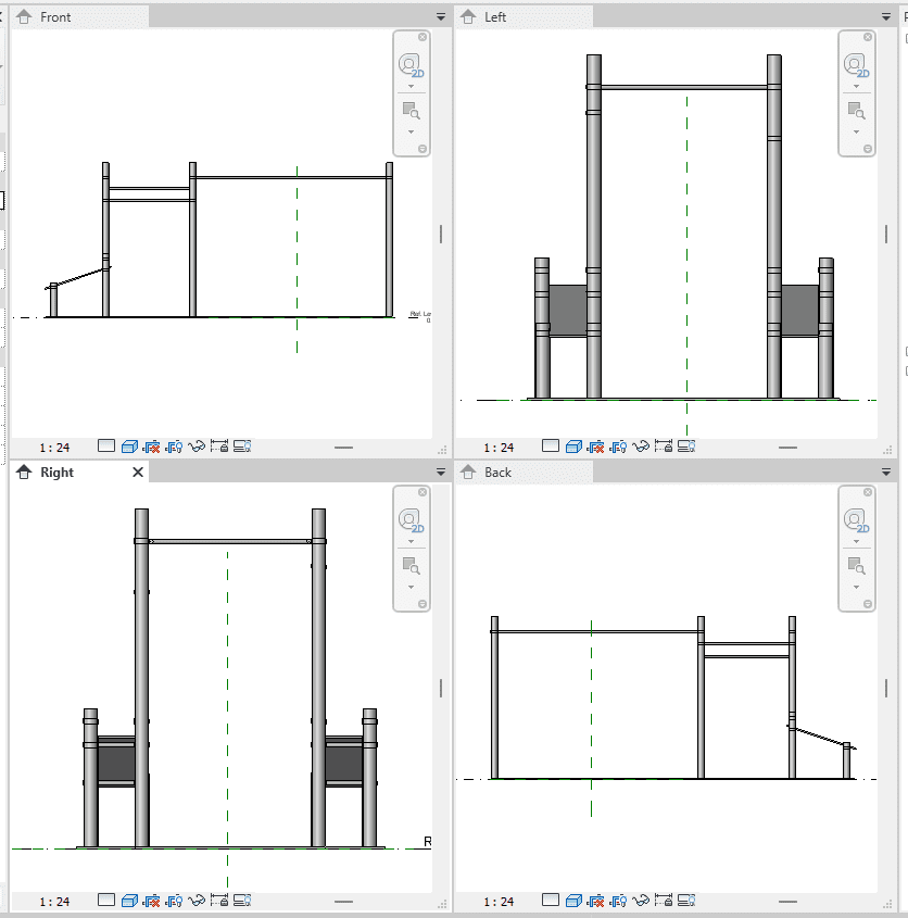 High-quality Gym Training Structure Revit Family with monkey bars, parallel bars, and vertical support posts. Ideal for indoor gyms, outdoor fitness parks, and sports facility BIM layouts.