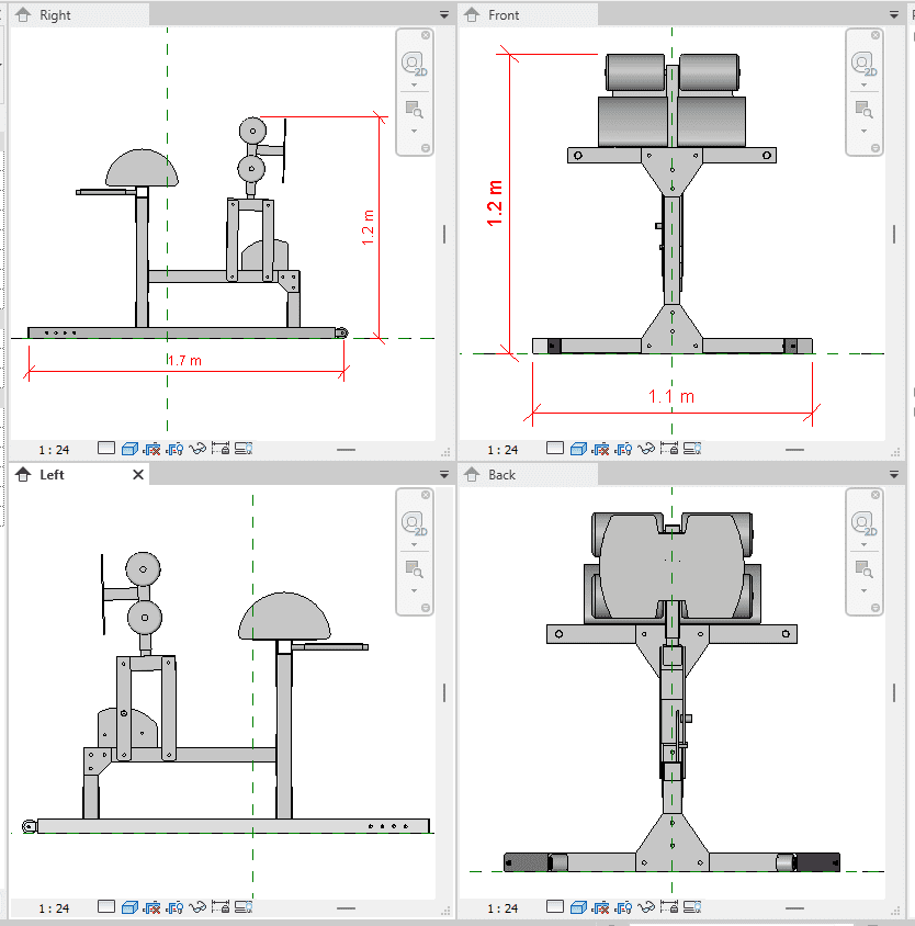 Built with Revit best-practice modeling standards, this hyperextension bench is reliable, clean, and ready for use in any professional BIM environment.