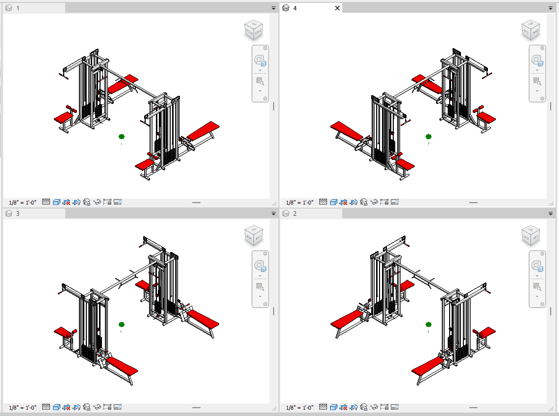 Maquina Multifuncional Gym Revit Family created in Revit 2019. A versatile and essential piece of gym equipment for fitness center designs.