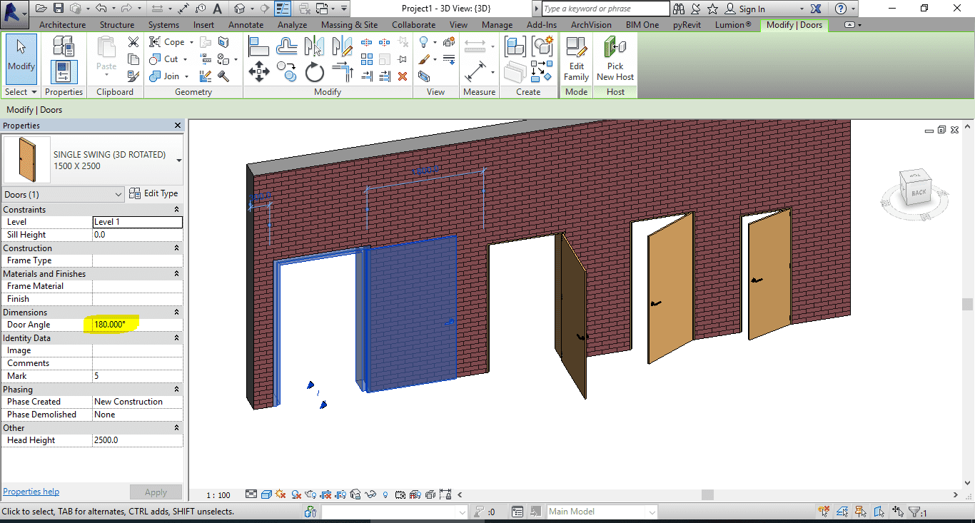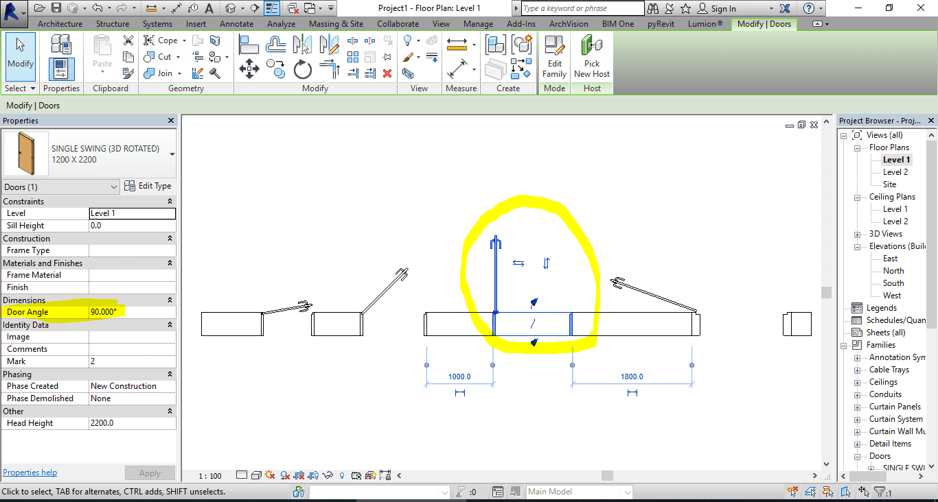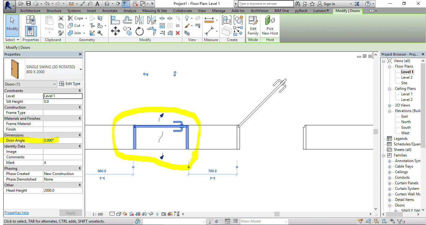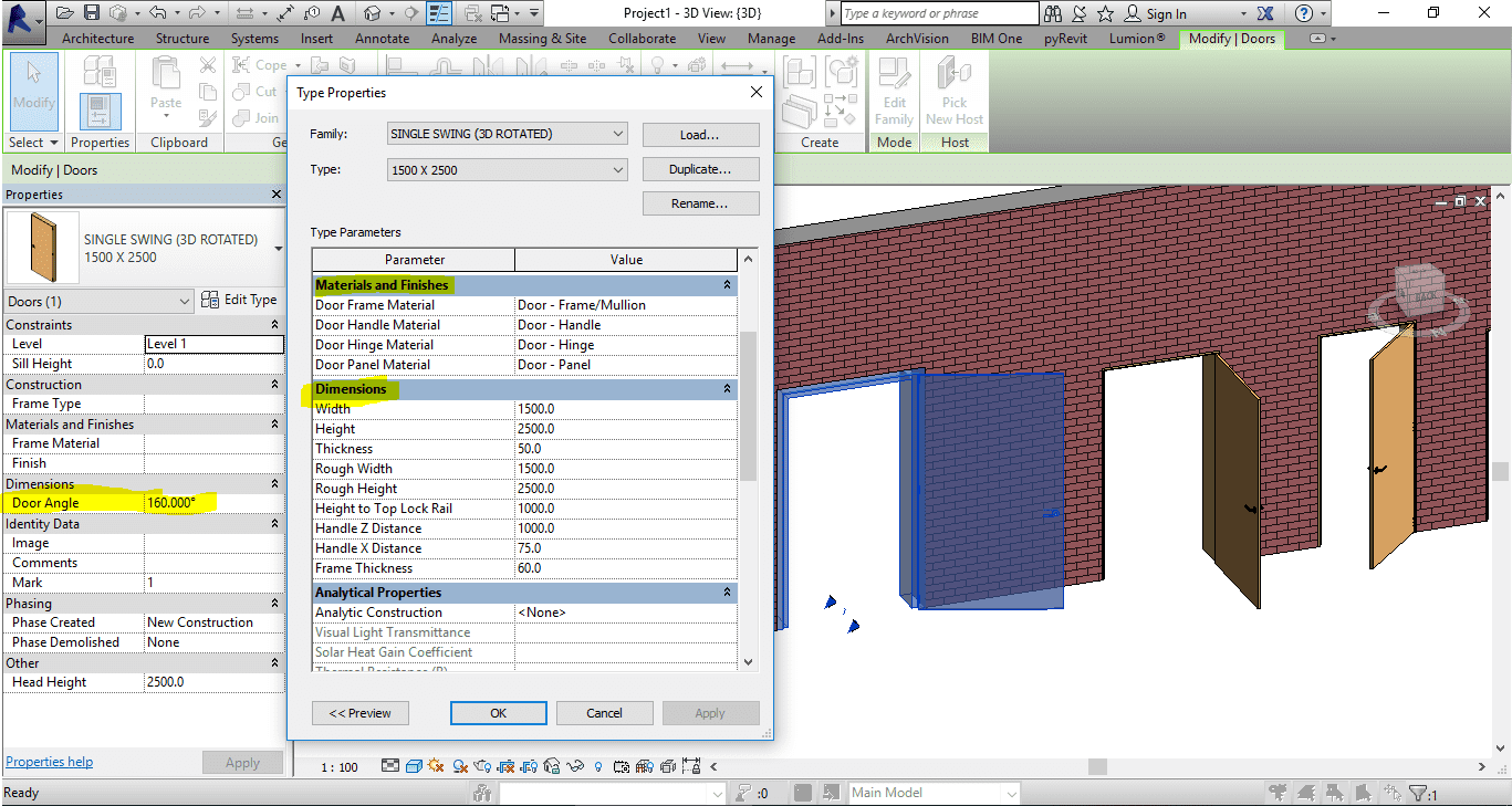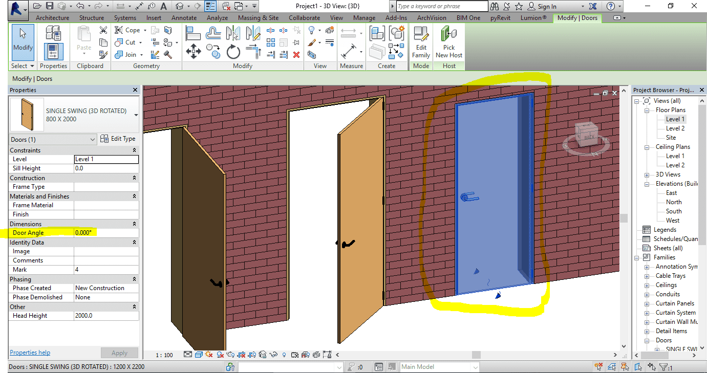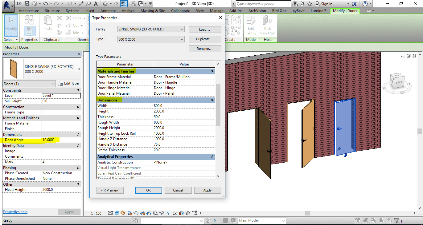Single door revit family.rfa (3d rotated & full parameter)